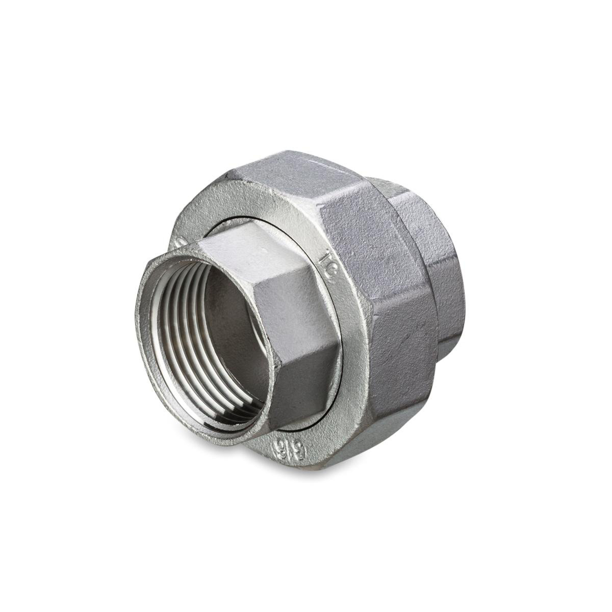 Union muffe/muffe med flad tætning, PTFE. Fremstillet i EN 1.4408 / 316-CF8M. Trykklasse: 20 bar. Tilslutning: 3/4". Inkl. 3.1 certifikat.