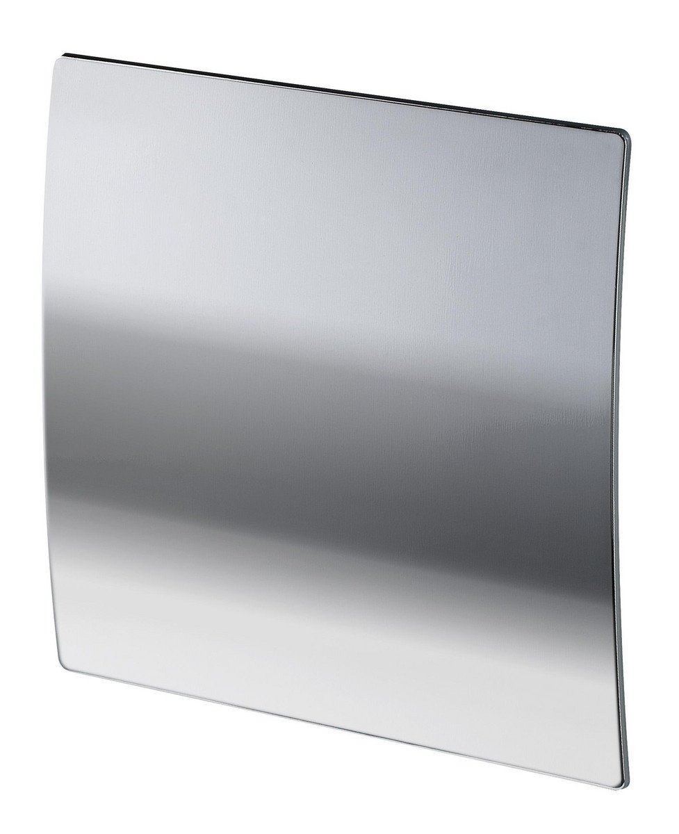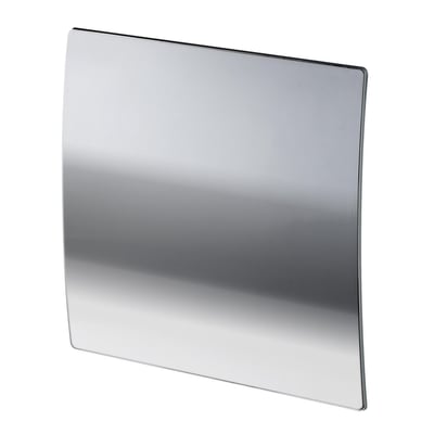 Frontpanel i sølv chrome look med buet design, specielt til UNITE system+ ventilatorer med en diameter på 100 mm. Kombineres med ventilatorhus eller ramme.