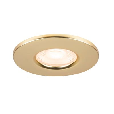 Universal downlight afdækning i mat guld med en diameter på 88mm og IP65-klassificering.