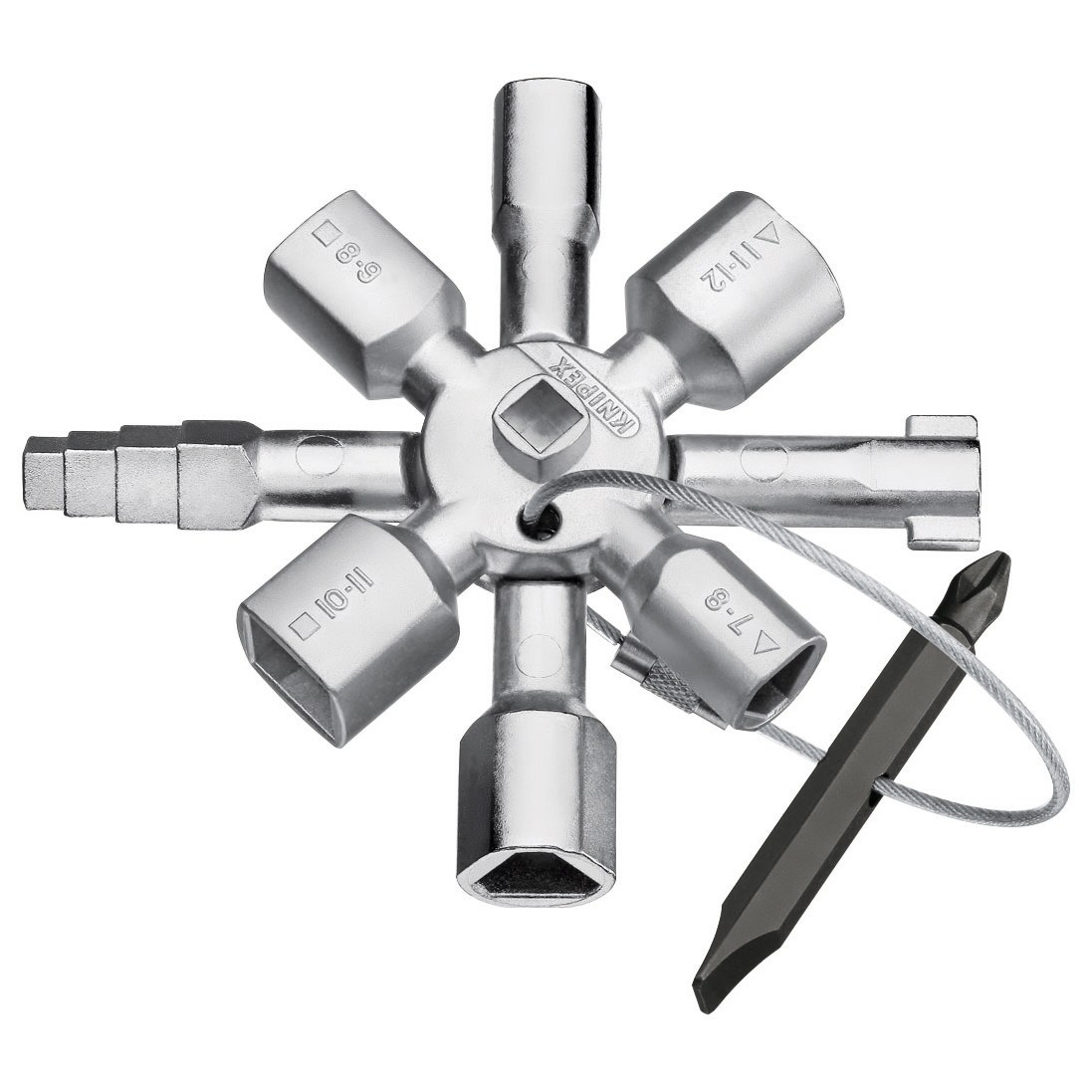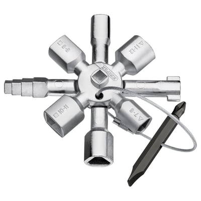 KNIPEX TwinKey® er en alsidig multinøgle designet til at betjene et bredt udvalg af lukkesystemer inden for bygningsteknik, herunder varme, sanitet, klima, ventilation og elektroteknik, samt gas- og vandforsyning og spærresystemer. Nøglen er 92 mm lang og har 10 forskellige profiler for maksimal kompatibilitet.