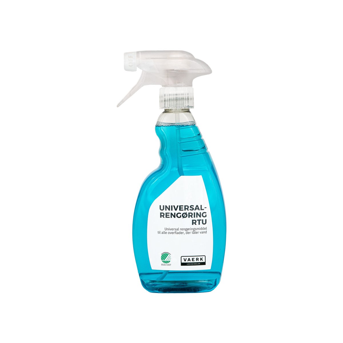 Klar-til-brug universalrengøringsmiddel, ideelt til hurtige og nemme rengøringsopgaver. Svanemærket for miljøvenlige og effektive resultater.