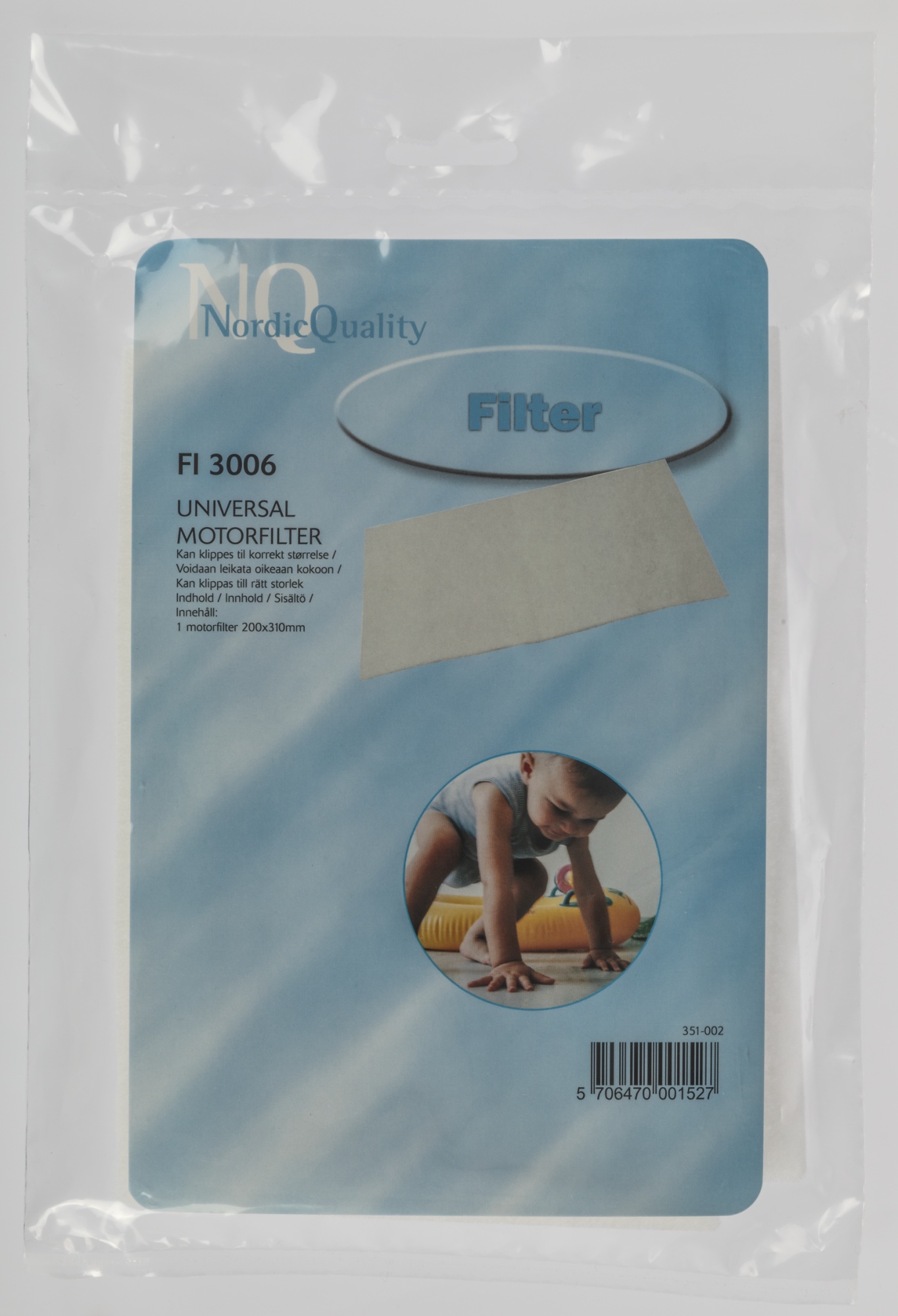 Universalt motorfilter, 200mm x 310mm.