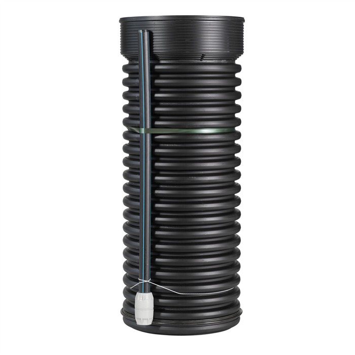 Sættet er nemt at installere og passer perfekt til eksisterende Uponor pumpebrønde. Med en diameter på 450 mm og en højde på 1000 mm giver det den nødvendige fleksibilitet til forskellige installationsbehov.