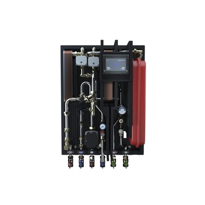 Fuldisoleret, elektronisk fjernvarmeunit til indirekte fjernvarmeanlæg med integreret varme- og brugsvandsveksler. Energieffektiv styring med adaptiv regulering.