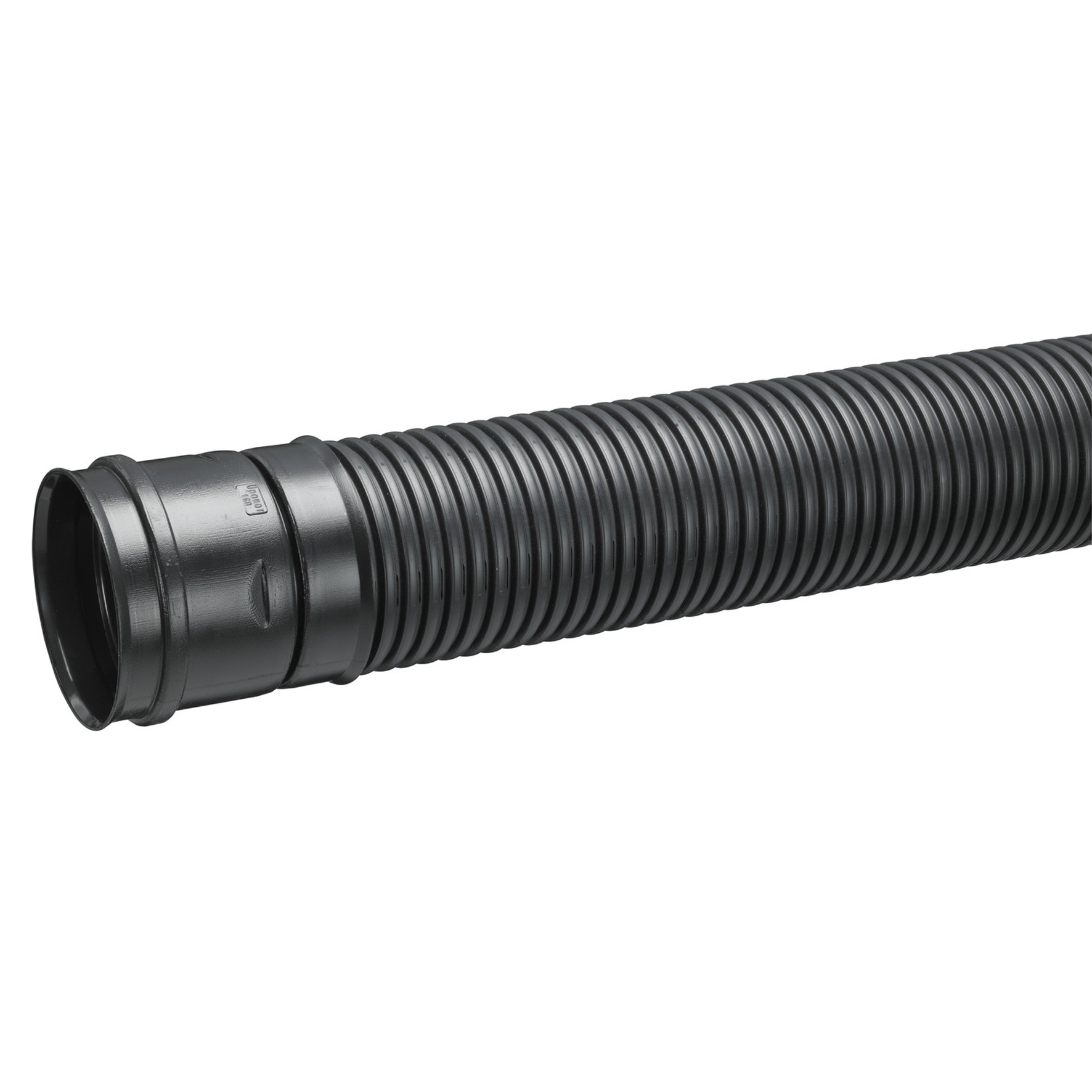 Uponor DN100 SN8 topslidset rør med muffe. Dobbeltvægget PE-rør med glat inderside og korrugeret yderside for høj slagfasthed. Dimension: 110/95 mm, længde: 6000 mm.