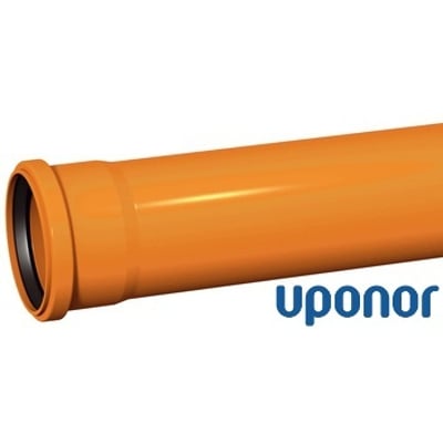 Standard kloakrør i PP-plast (miljøvenlig) fra Uponor. Glat indvendigt og med oliebestandig tætningsring i muffe-enden. Trykklasse SN8. Stor modstandsevne overfor indvendig slitage.