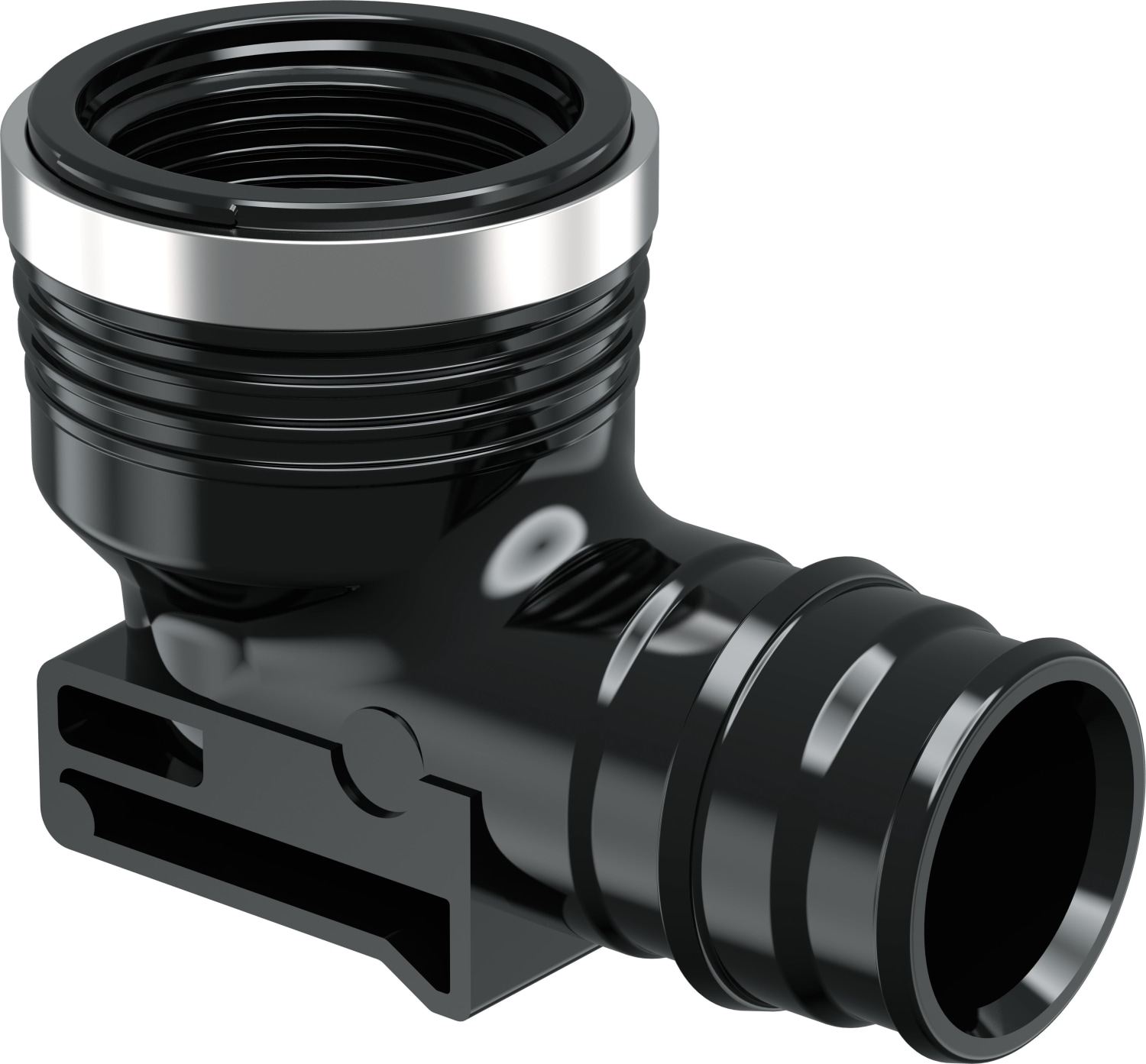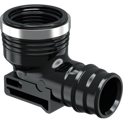 Uponor Q&E vinkel med muffe i PPSU. Til Q&E koblingssystem med Uponor PE-Xa rør. OBS: Uden Q&E ringe (skal købes separat).