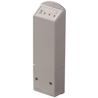 Trådløst relæmodul med 2 udgange, der anvendes sammen med Uponor Smatrix Wave rumtermostater eller kontrolenhed X-165 6X. Modulet indeholder strømforsyning og montagebeslag.