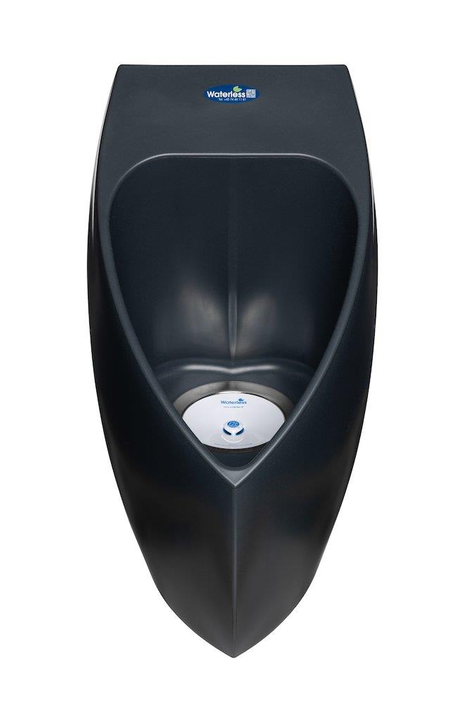 Dette væghængte urinal er produceret i Danmark af 100 % genbrugsplast og kan genbruges op til 7 gange. Urinalet er designet med fokus på miljøvenlighed, hvor selv indpakningen er tænkt ind i den grønne linje.
