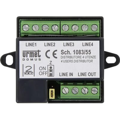 Denne Urmet fordeler er designet til brug i 2Voice porttelefonsystemer, specielt når der installeres 2Voice med video. Fordeleren har fire udgange, hvilket giver mulighed for fleksibel udvidelse af systemet.