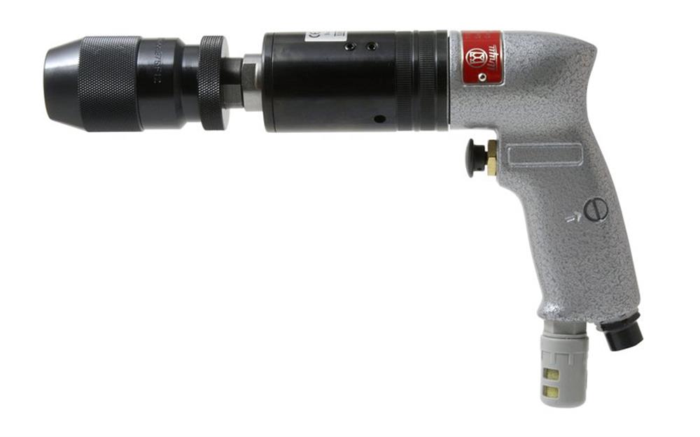 Kraftig og lyddæmpet trykluft boremaskine i pistoludførelse med 700 omdr./min. og 13 mm borekapacitet. Leveres uden borepatron. Vægt 1,4 kg.