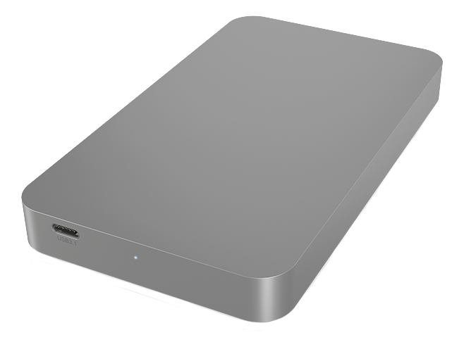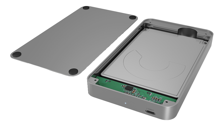 USB 3.1 Type-C™ (Gen 2) kabinet til 2.5" SATA drev i sølv.