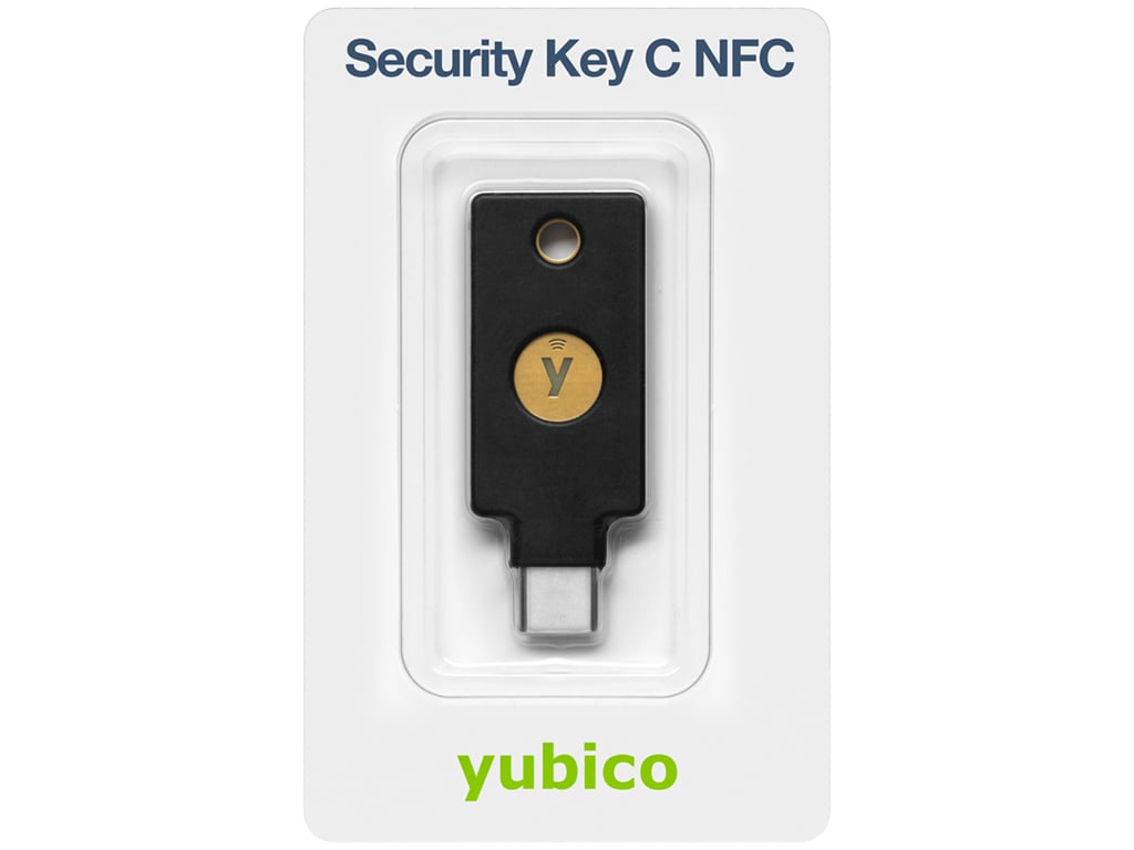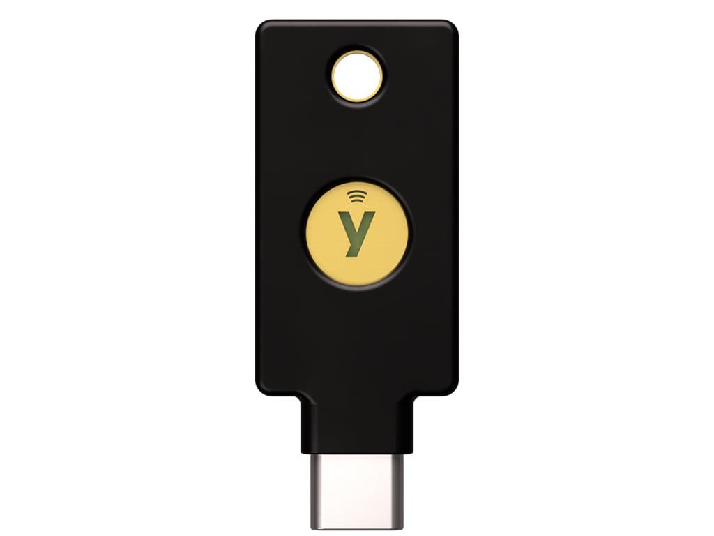 Sikkerhedsnøgle med USB-C og NFC til sikker login og databeskyttelse.