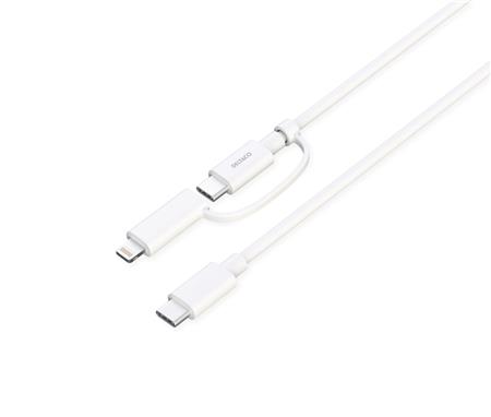 USB-C til USB-C kabel med Lightning adapter til opladning og synkronisering af din iPod, iPhone, iPad eller andre Apple produkter med Lightning stik.