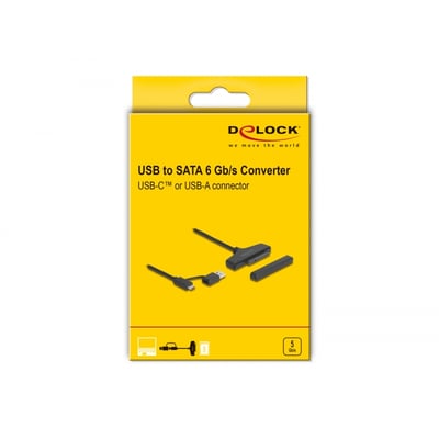 Denne konverter fra Delock giver dig mulighed for at tilslutte en 2,5" SATA HDD eller SSD med 22-pin SATA-interface til din PC eller bærbare computer. Tilslutningen sker via enten USB-C™ eller USB Type-A, hvilket sikrer bred kompatibilitet.