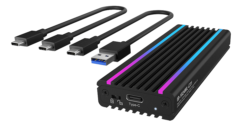 USB Type-C™ kabinet til M.2 NVMe SSD med RGB belysning.