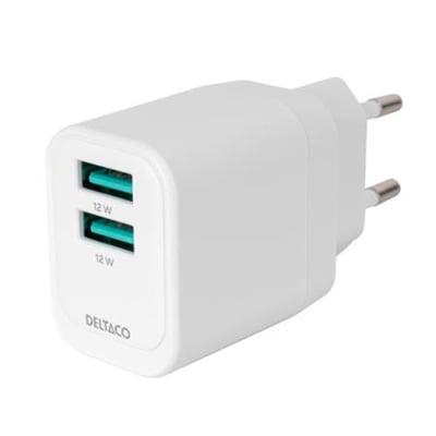 DELTACO Vægtoplader, 2x USB-A, 12W