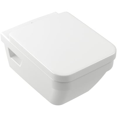 Væghængt toilet fra Villeroy & Boch i hvid med traditionel overflade og uden skyllekant for nem rengøring. Måler 370 x 530 mm.