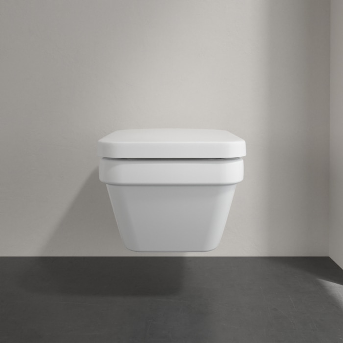 Dette ARCHITECTURA væghængte toilet fra Villeroy & Boch er designet til at tilbyde både funktionalitet og æstetik til dit badeværelse. Med sit væghængte design frigøres gulvplads, hvilket gør rengøring under toilettet lettere og bidrager til et mere rummeligt udtryk.