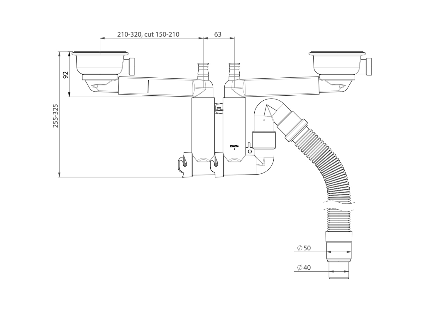 Komplet afløbssæt fra Franke til vaske med 2 kummer.