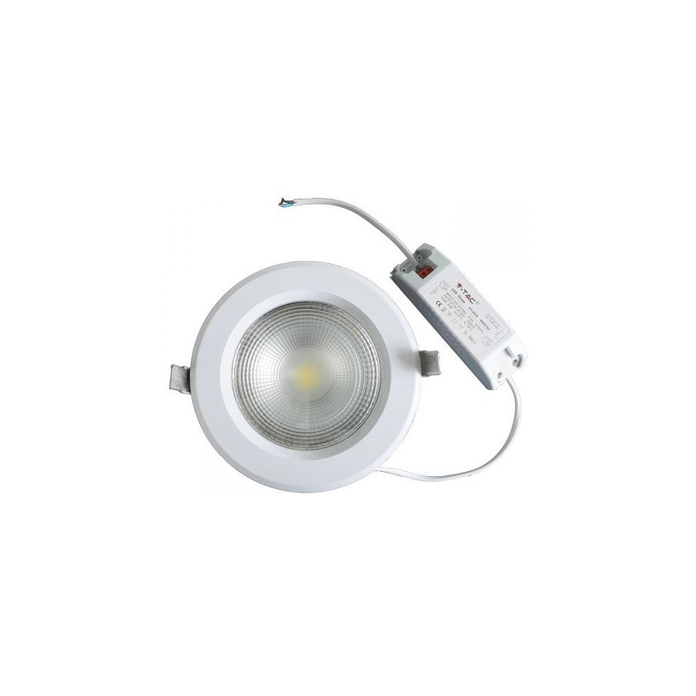 10W LED indbygningsspot fra V-Tac, der erstatter 90W. Kræver Ø12 cm hul og har et mål på Ø13.5 cm. Leverer 1200lm og har en RA80.