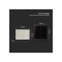 Projektøren har dimensionerne 365 x 260 mm og er fremstillet i holdbart aluminium. Med en IP65-klassificering er den beskyttet mod støv og kraftige vandstråler, hvilket gør den velegnet til alle udendørs forhold, herunder regn og fugt.