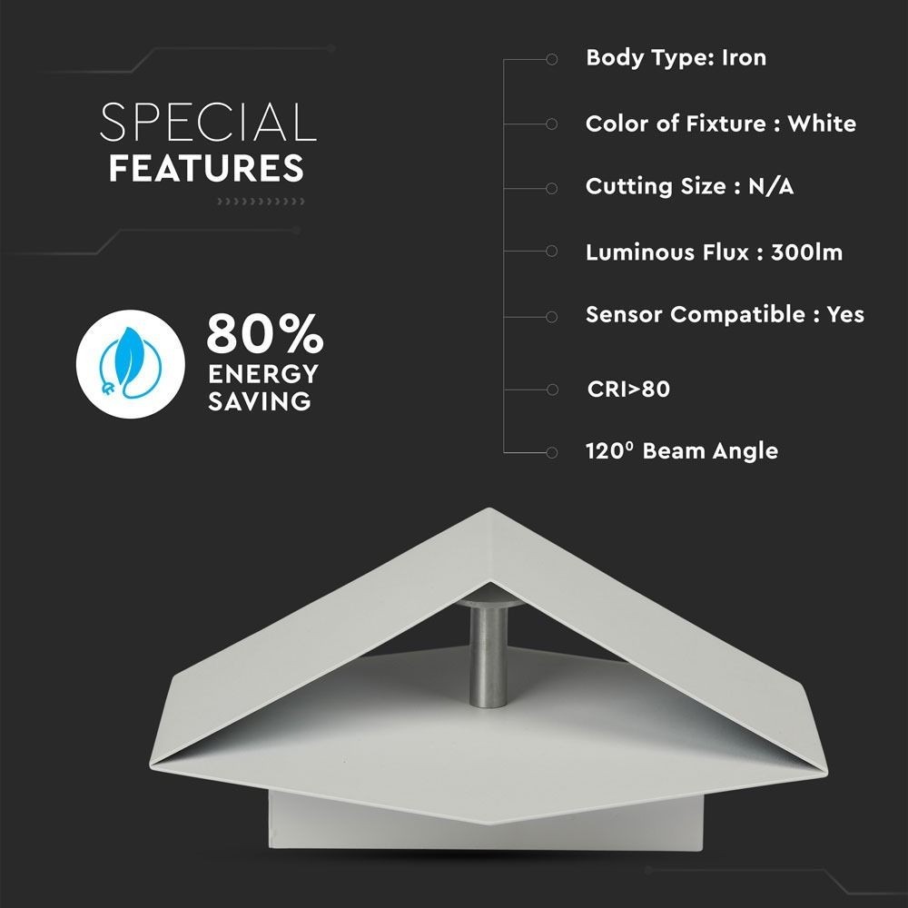 V-Tac LED væglampe, 3W, hvid, IP20, 230V, 3000K