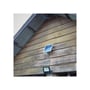 Projektøren har dimensionerne 353 x 304 mm og er fremstillet i aluminium. Med en IP65-klassificering er den beskyttet mod støv og vandstråler, hvilket gør den velegnet til udendørs brug under alle vejrforhold. Den integrerede lyskilde eliminerer behovet for pæreskift.