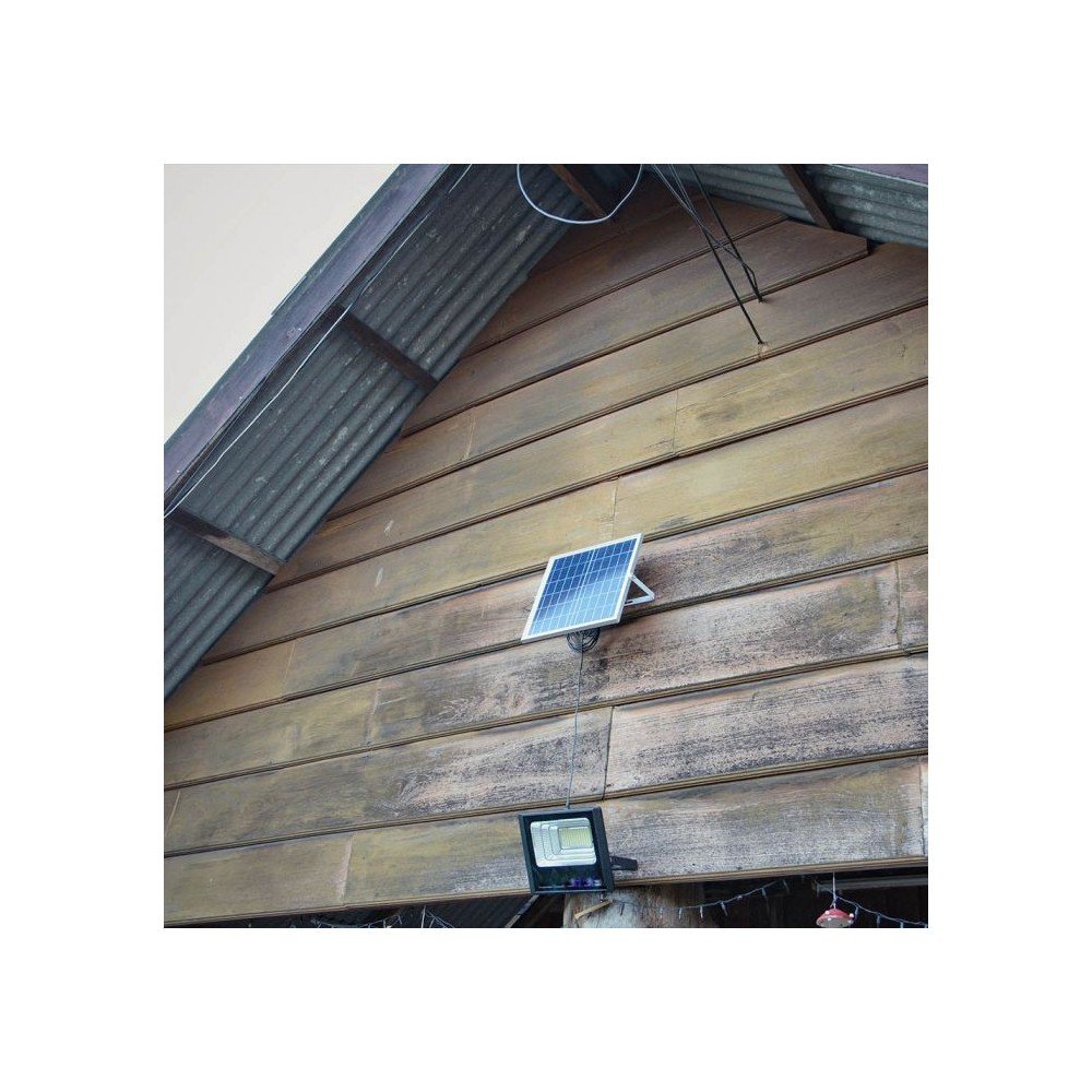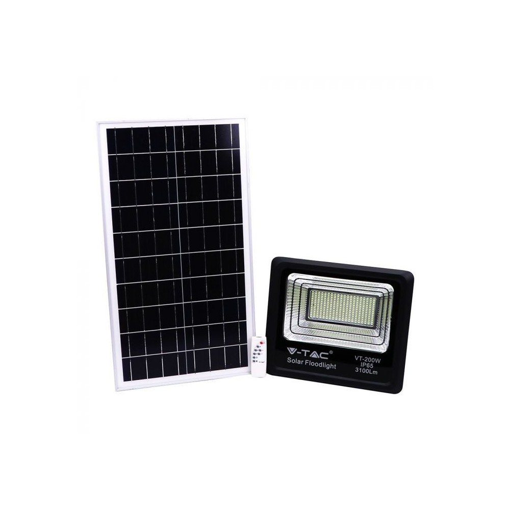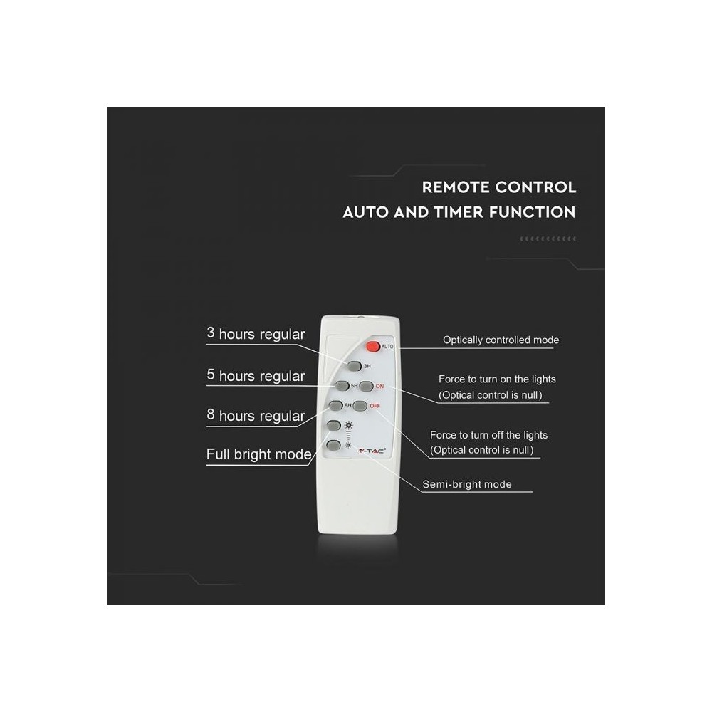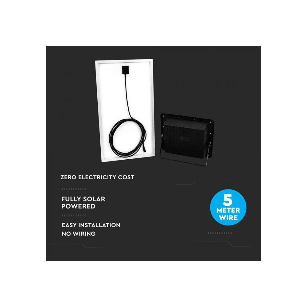 Denne 40W solcelle projektør fra V-Tac er en effektiv og brugervenlig løsning til udendørs belysning. Den sorte projektør leveres med en integreret solcelle og en fjernbetjening, der giver fuld kontrol over lyset.