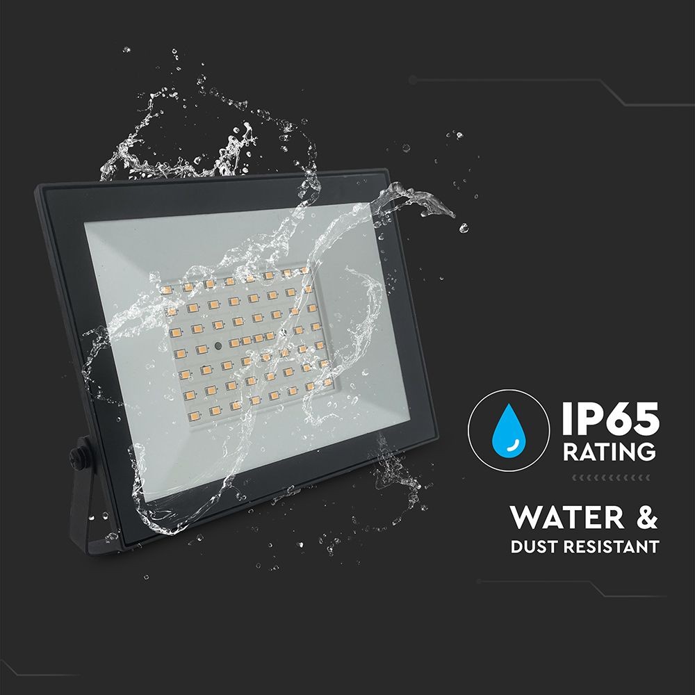 V-Tac 50W LED projektør til udendørs brug. Med 4500lm, RA80 og IP65 klassificering. Perfekt som arbejdslampe.