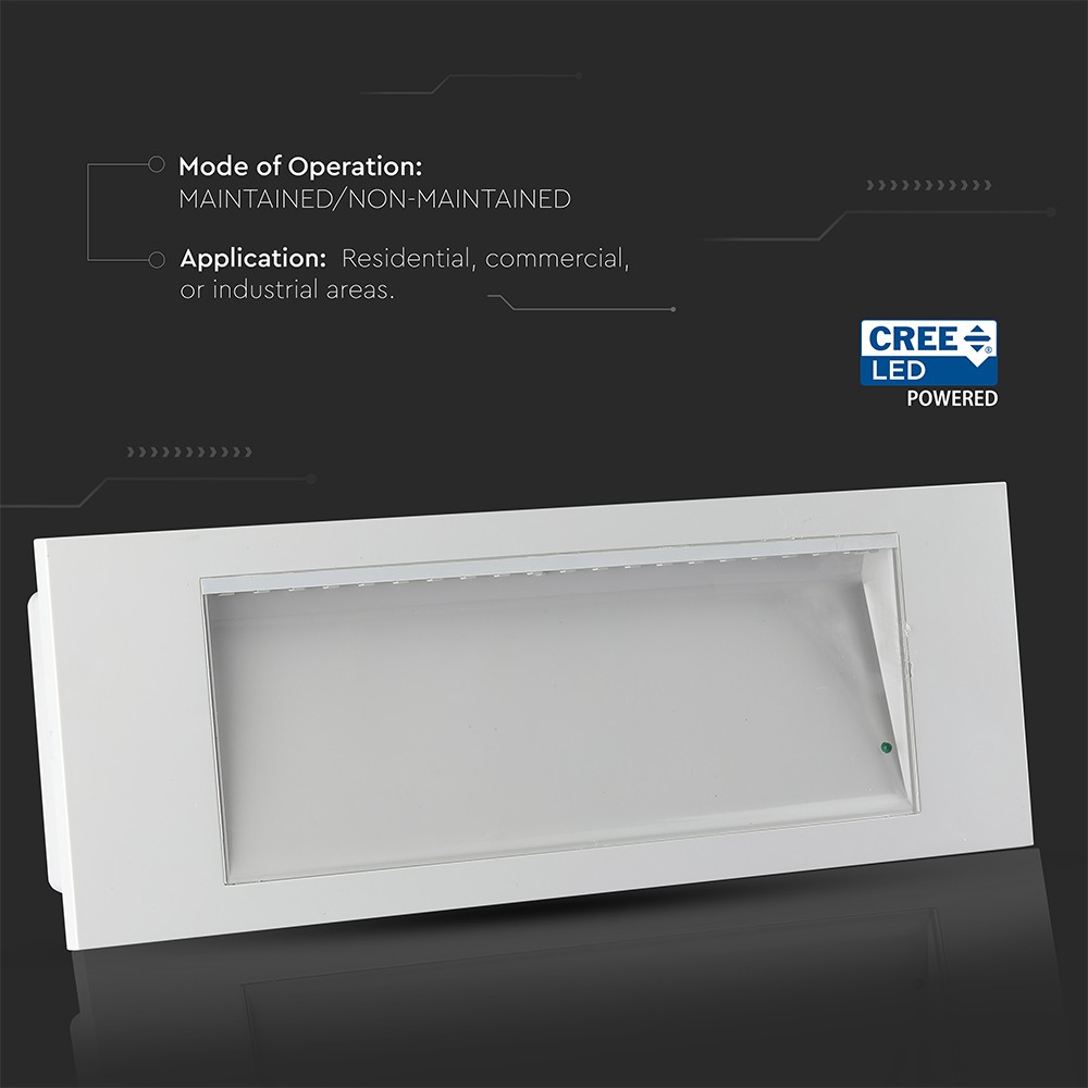 V-Tac 511 LED nødbelysning med 12 timers drift, CREE chip og 6000K lysfarve. 3.8W forbrug og 110lm lysstyrke.