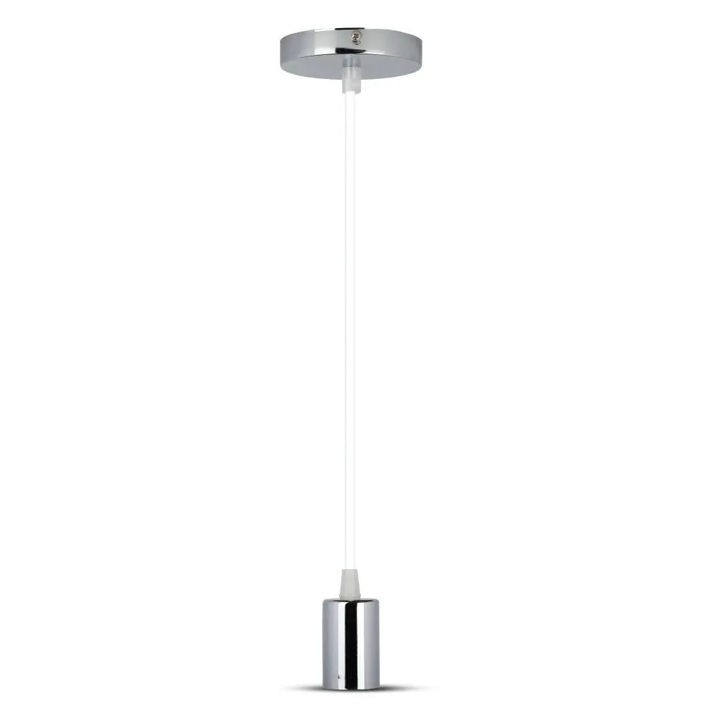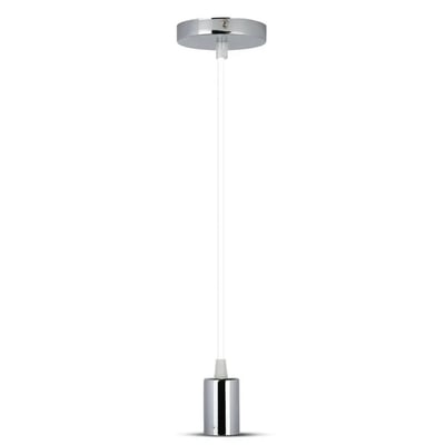 Denne V-Tac lampefatning kombinerer et stilrent design med praktisk funktionalitet. Fatningen er udført i krom metal og leveres med en hvid ledning, hvilket giver et moderne og rent udtryk. Den er ideel til brug i forskellige indendørs miljøer, hvor et minimalistisk design ønskes.