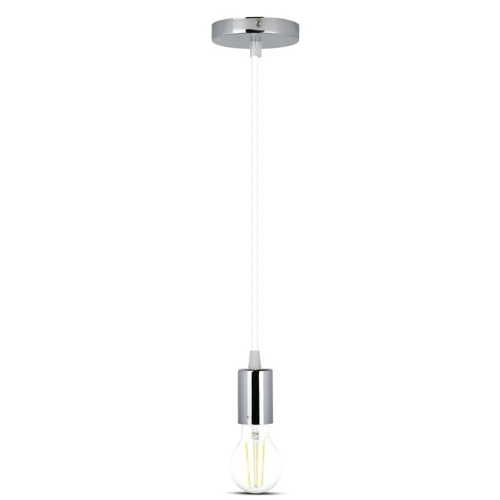 Elegant E27 lampefatning i krom metal med hvid ledning. 230V, IP20. Maks. 60W. Sensor kompatibel.