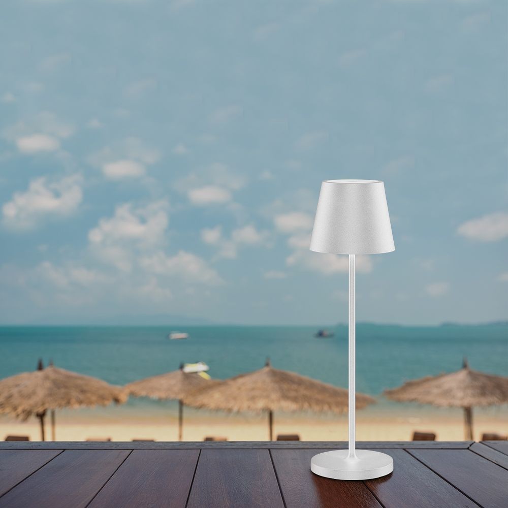 V-Tac Mini Opladelig Bordlampe, hvid, trådløs, IP54 udendørs, touch dæmpbar, 2W, 200lm, RA80