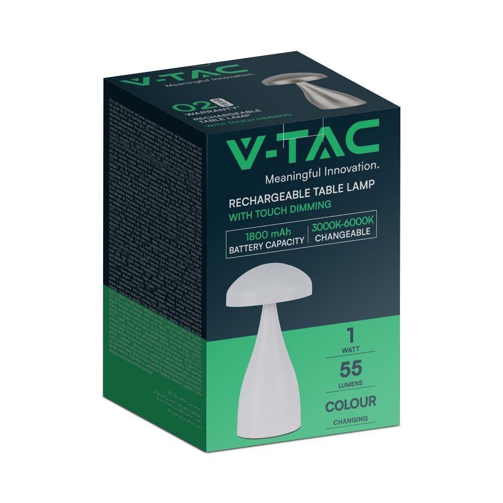 V-Tac Mini Opladelig CCT Bordlampe, Hvid, IP20, Touch Dæmpbar, 1W, 55lm