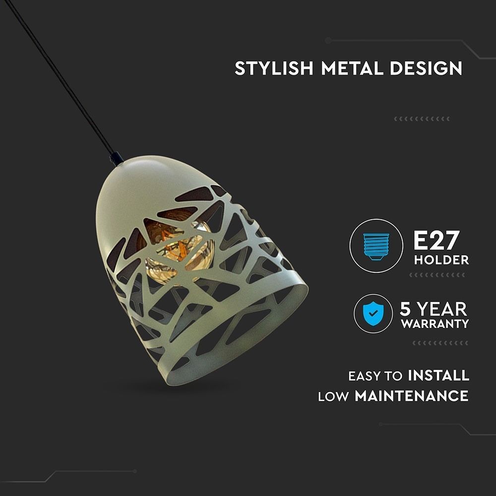 Denne V-Tac pendellampe kombinerer funktionalitet med et moderne design i mat grå metal. Med sin E27 fatning er den alsidig og nem at tilpasse med din foretrukne lyskilde. Lampen er ideel til at skabe stemning og belysning i stuen, køkkenet eller over spisebordet.
