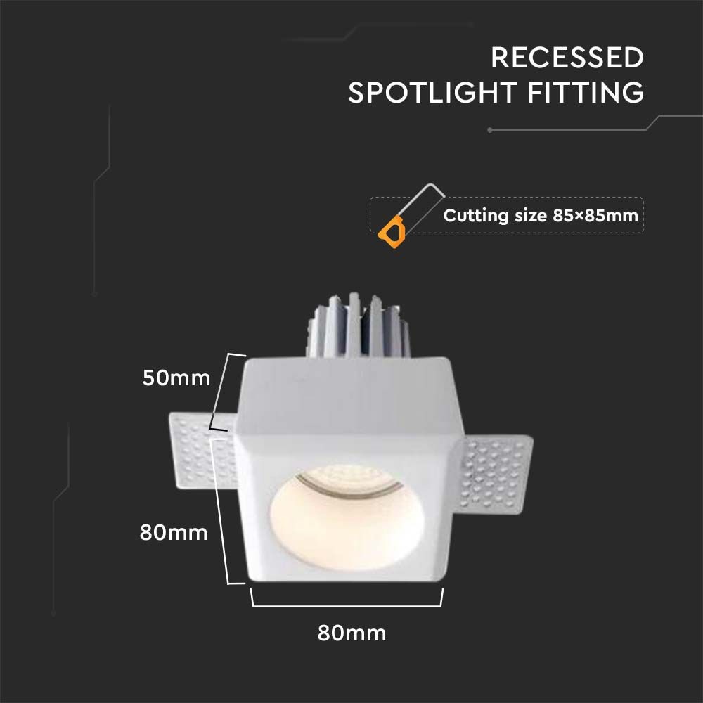 V-Tac Pro GU10 LED lampe med rund design, ideel til indendørs brug. IP20 klassificering og lavet af gypsum.
