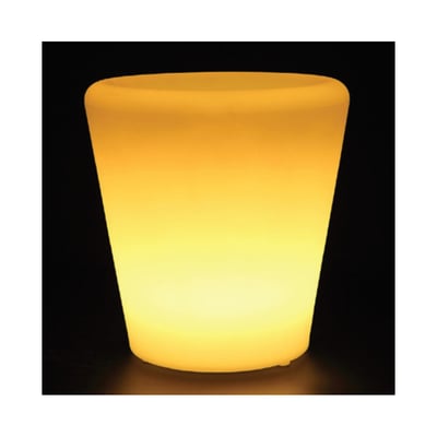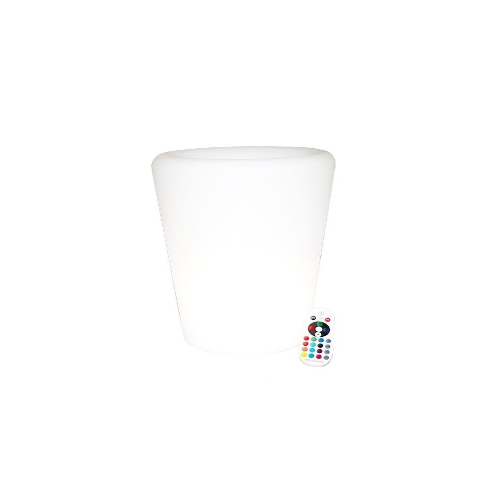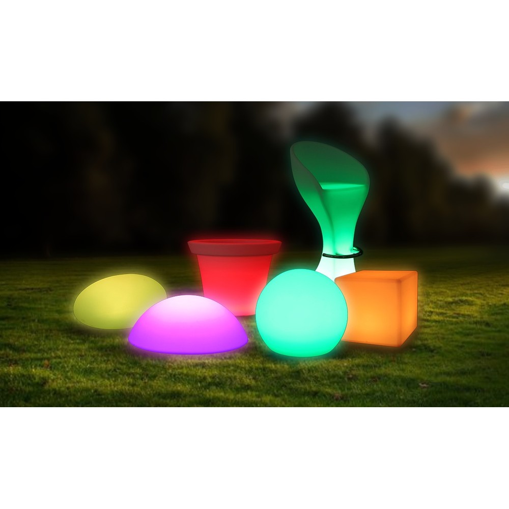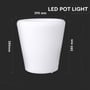 V-Tac RGB LED potteskjuler med genopladeligt batteri og fjernbetjening. IP54-klassificeret, 18 lumen, 0,5W. Mål: 28x28x29 cm.