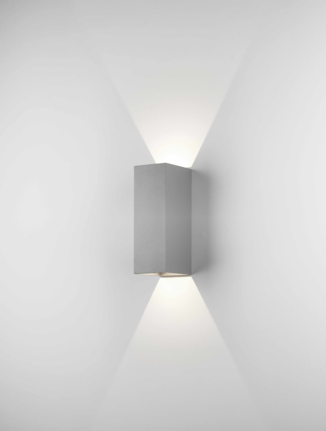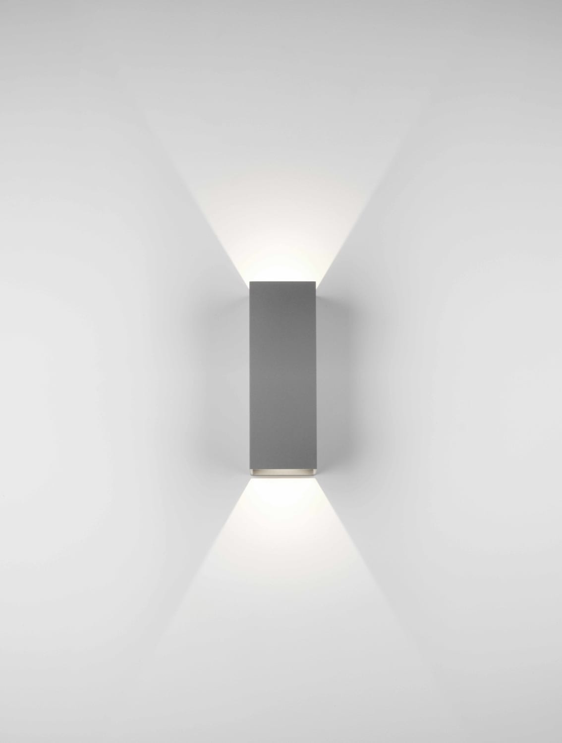 Flot grå Astro 7990 Oslo 255 LED væglampe med up/down lys. IP65-godkendt til vådrum og udendørs brug. Inkl. driver og lyskilder. Dimensioner: H255 x B90 x D110 mm.