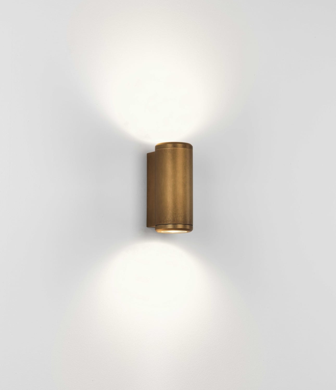 Astro Coastal Jura Twin væglampe med 2 fatninger. Fremstillet i massiv messing og designet til udendørs brug. IP44.