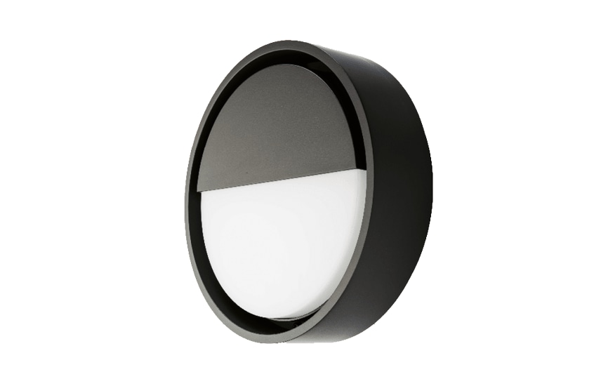 Moderne, rundt LED-armatur til væg- og loftmontering, både indendørs og udendørs. 7W, 3000K, sort.