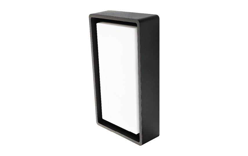 Frame er produceret i trykstøbt, pulverlakeret aluminium og fås i farverne sort, hvid eller grafit. Den er korrosionsbeskyttet, IP65-klassificeret og har en vandal-resistent rating på IK10.
