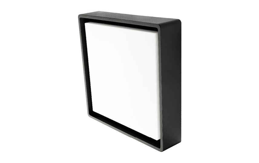 Armaturet har en flad diffusor lavet af UV-stabiliseret opal polycarbonat. Det er produceret i trykstøbt, pulverlakeret aluminium og fås i farverne sort, hvid eller grafit. Med sine dimensioner på 310 mm i længde og bredde, og en højde på 77 mm, passer det diskret ind i de fleste omgivelser.