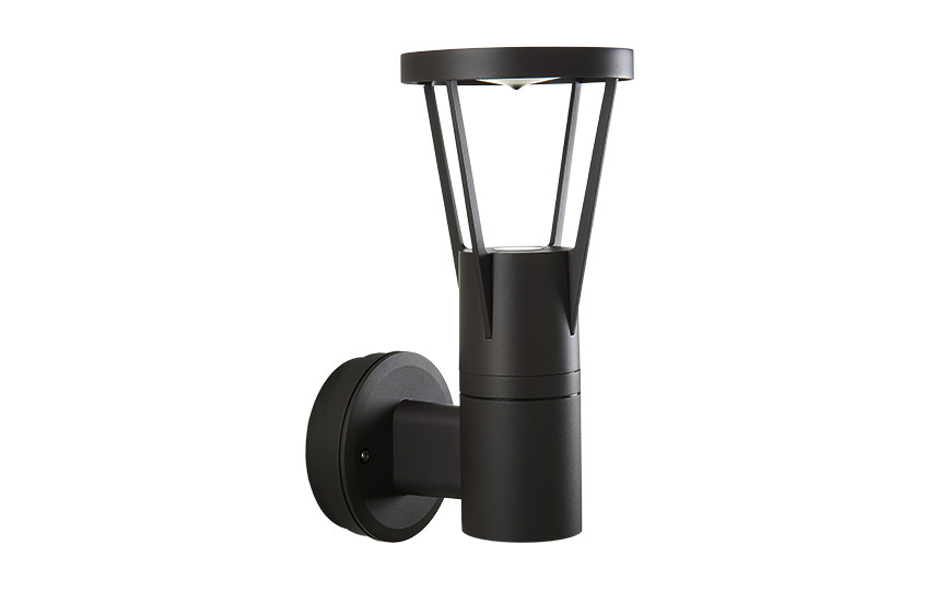 Moderne LED væglampe, der skaber spændende lys. Pulverlakeret i mat grafitfinish. IP54 og IK08 klassificeret for holdbarhed.