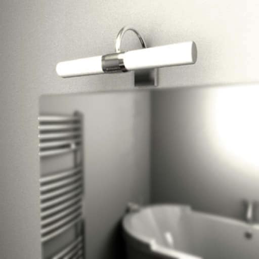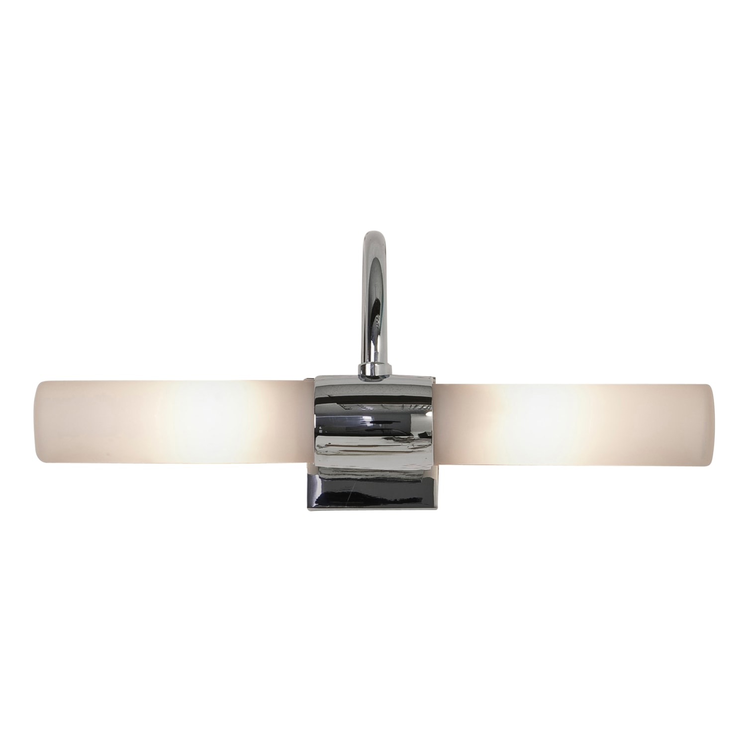 Elegant væglampe i blank krom og opal/klart glas. IP44-godkendt til vådrum. Ekskl. lyskilde.