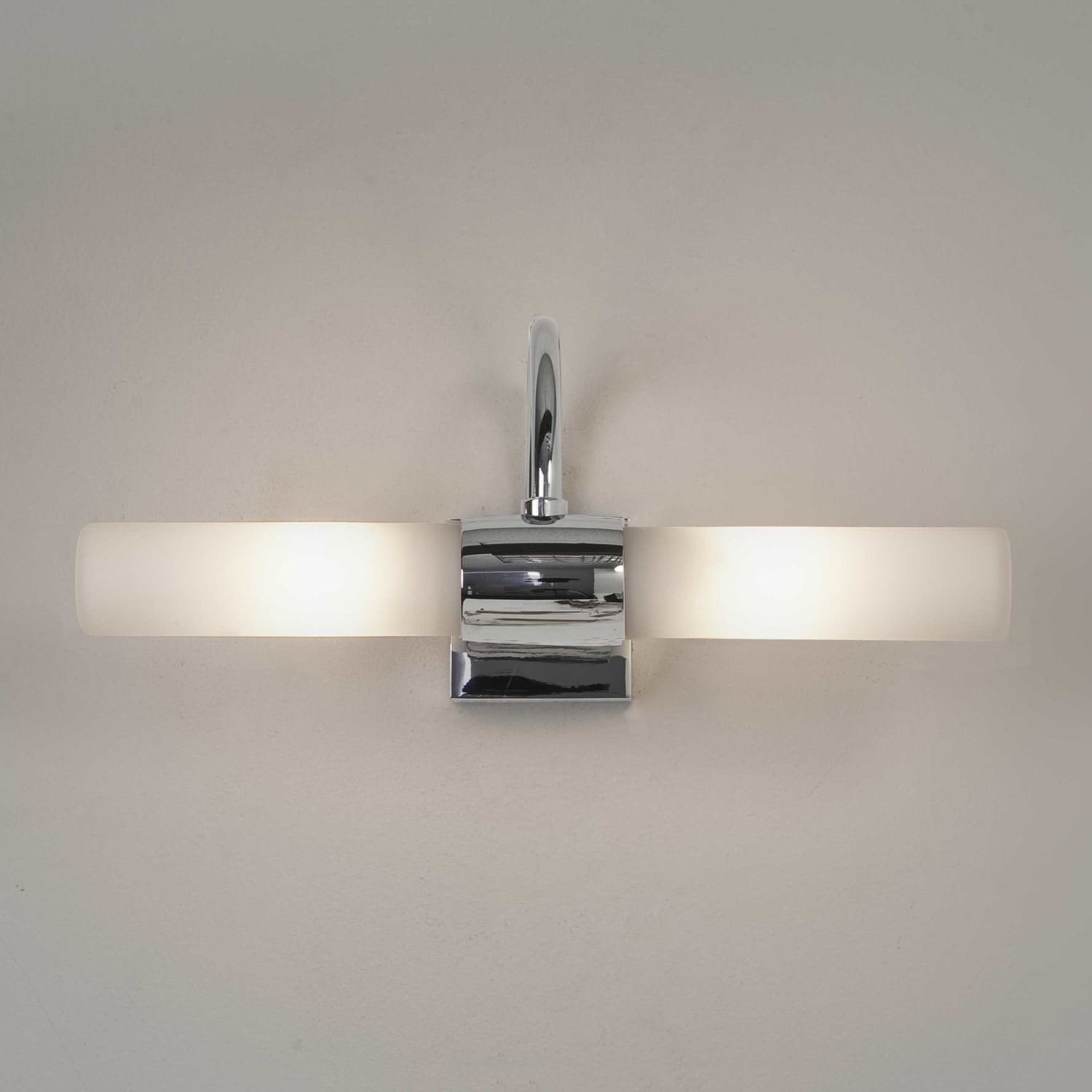 Dette elegante vægarmatur fra Astro, model 0335 Dayton, er udført i blank krom og kombinerer opal- og klart glas for et stilfuldt udtryk. Lampen er IP44-godkendt, hvilket gør den velegnet til brug i vådrum.