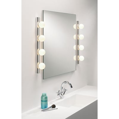 Astro Cabaret 4 er en elegant spejllampe i krom, der giver et stilfuldt og funktionelt lys til badeværelset. Med plads til fire lyskilder (medfølger ikke) kan du skabe den perfekte belysning til dine behov.
