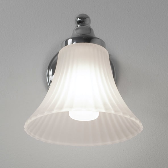 Klassisk væglampe fra Astro, model Nena 0506. Krom finish og IP44-godkendt til vådrum. Kræver 1 stk. G9 lyskilde (maks. 40W).