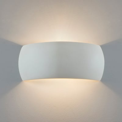 Den keramiske Astro 7073 Milo væglampe er en stilren og fleksibel løsning til indendørs belysning. Lampens overflade kan males, hvilket giver mulighed for at tilpasse den til rummets farver og stil.
