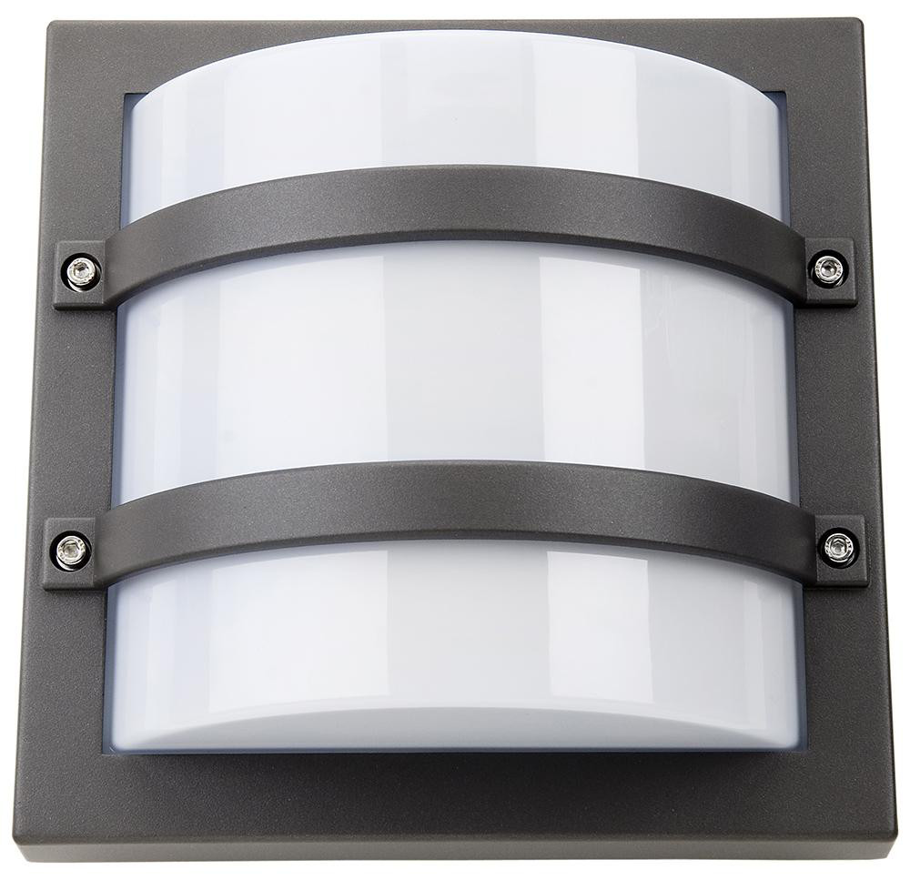 Firkantet, vandalsikkert E27 vægarmatur til udendørs brug. Klassisk design med 2 tværgående sikringsbøjler. Ideel til facadebelysning, stier og over døre.